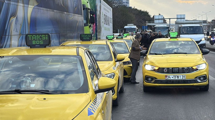 Burada toplanan bir grup taksici, açtıkları pankart ve dövizlerle korsan taksiciliğe tepki gösterdi.
